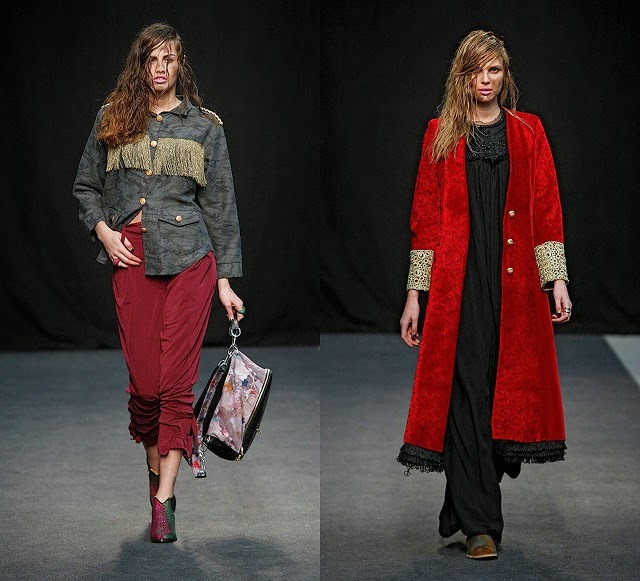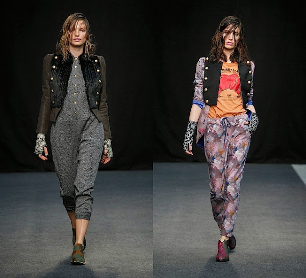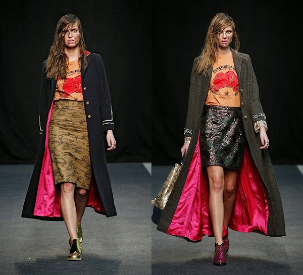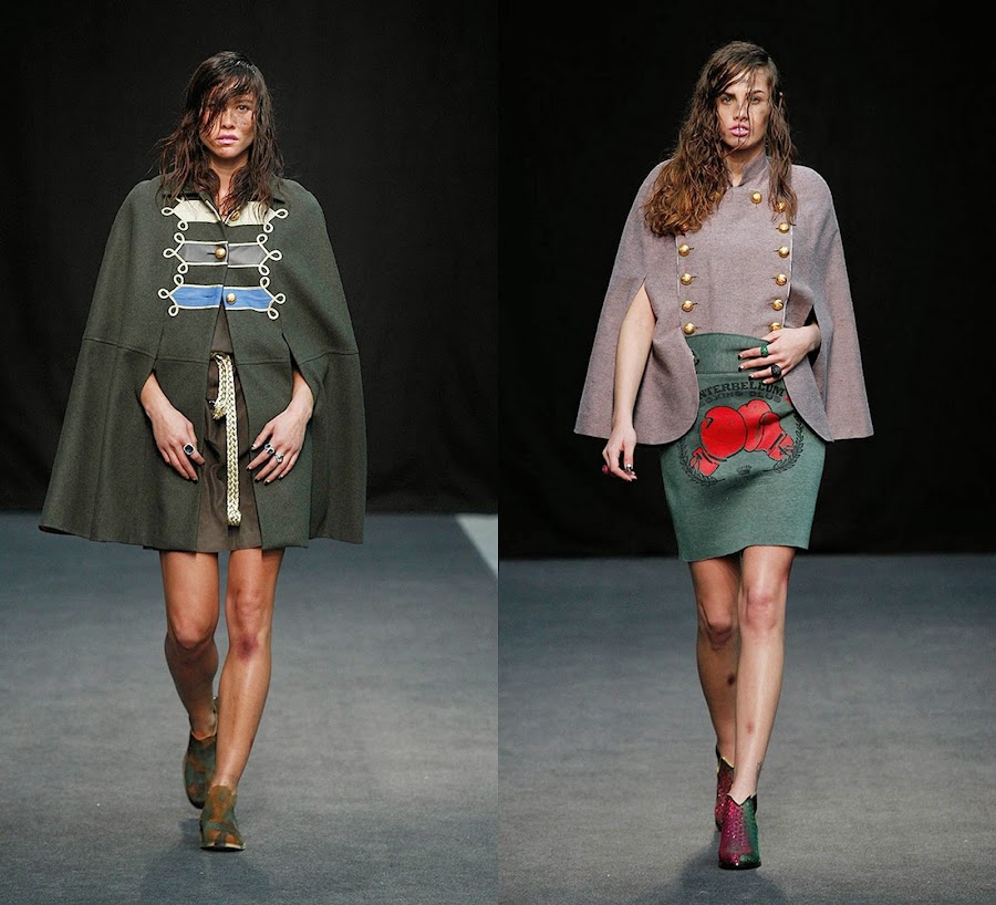 Mucho estampado militar, para seguir pisando fuerte en su temática, chaquetas militares clásicas. Me han gustado mucho las capas de lana 100%, los largos abrigos, y las chaquetas con detalles de terciopelo.