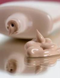 Si el maquillaje es graso tiende a disgregarse por lo cual hay que agitarlos, si notas que es muy graso añade unas gotas de loción astringente...lo que hace es que no sea tan oleoso o brillante, en otras palabras, más mate.