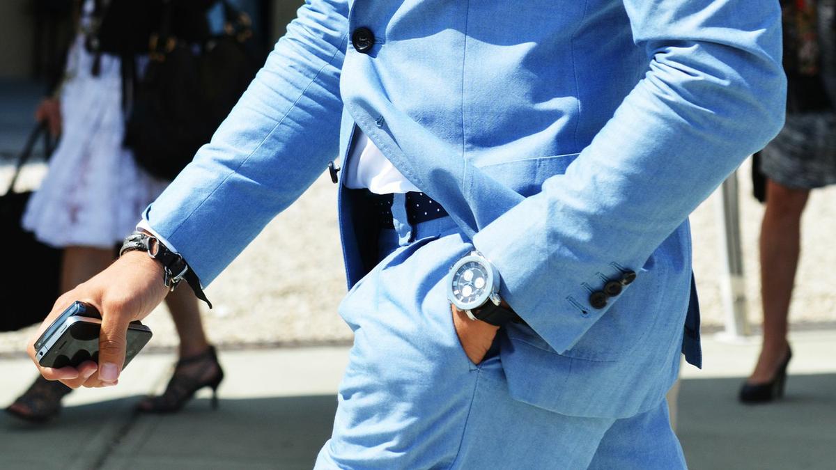 Un poco más informal de lo que esperarías usar para, por ejemplo, la oficina de un abogado, este tipo de look es perfecto para un hombre elegante en una boda de verano.