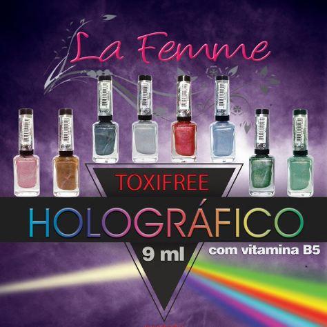La Femme es una marca de industria Brasilera que tiene una línea de esmaltes holográficos compuesta por 8 colores, siendo Única el más pedido de la colección.