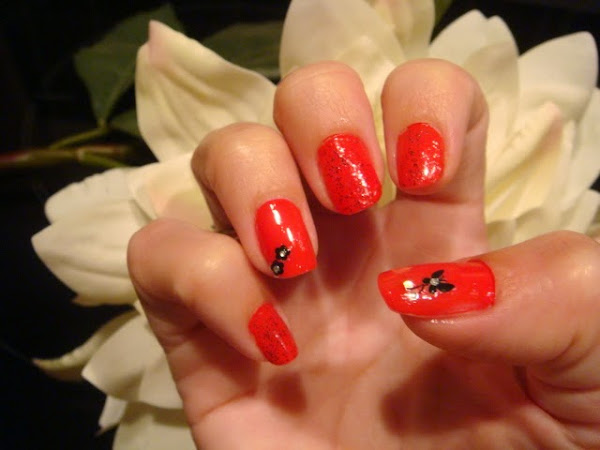 Paso 2.- Aplicamos el tono Seas The Day de China Glazé. Ojito, que sólo he aplicado una capa, y además os enseño la manicura a medio terminar. Este esmalte me tiene loca, que buena cobertura, cuanto brillo...Es un rojo fresa absolutamente precioso con el que os tenéis que hacer sí o sí.