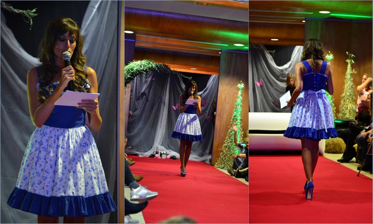 Un encuentro que estoy segura será recordado entre la multitud de desfiles que se suceden vertiginosamente en estos meses en nuestra región, no sólo por la espectacular puesta en escena y por el altísimo grado de implicación de los jóvenes diseñadores y las tiendas de Oviedo, Gijón y Avilés que exhibieron sus prendas, calzado y complementos, así como de los artistas de diferentes disciplinas que también participaron, sino por la gran afluencia de público (más de un centenar de personas) que se congregó para conocer de primera mano las últimas tendencias para la nueva temporada, tanto para el día a día, como en novias y lencería, sin olvidar a los más peques de la casa. Tampoco faltó la estética, ya que se presentaron todas las novedades en uñas de gel. Además, en el hall del hotel se instalaron varios corners de belleza y moda, como el de COMPLEMENTOS Y LOLITAS, cuya diseñadora, Tamara Ferrero, fue la encargada de vestirme en la primera parte con el diseño que veis con más detalle en la siguiente imagen.