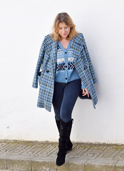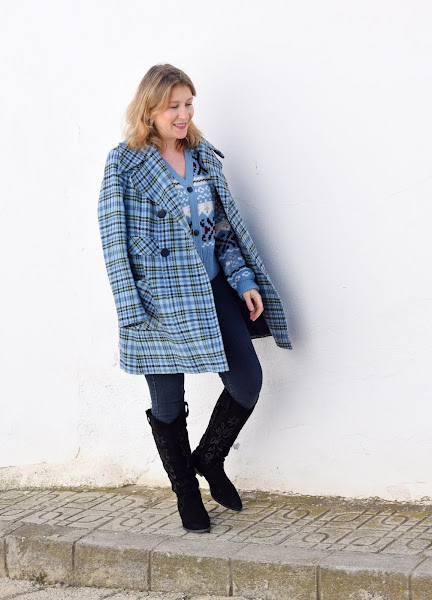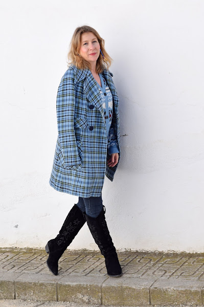 Esta vez con básicos como son los pantalones pitillo, unas botas altas y mi abrigo de cuadros preferido, dos estampados juntos que se complementan a la perfección.