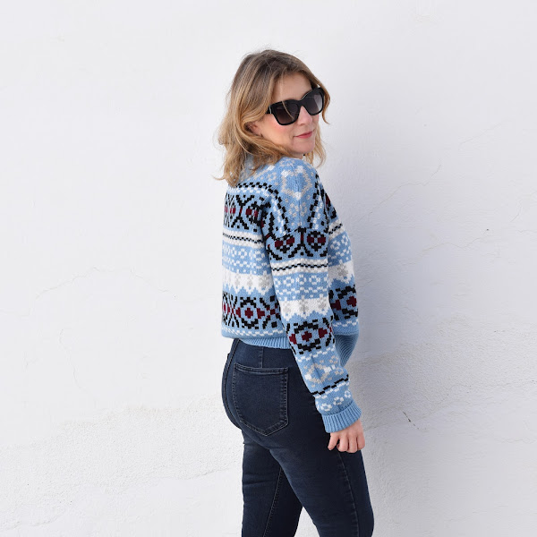 Esta chaqueta se la vi a Mónica Sors, y me encantó nada más verla. Sobre todo por los colores azules y la versatilidad que le veo con muchísimas prendas.