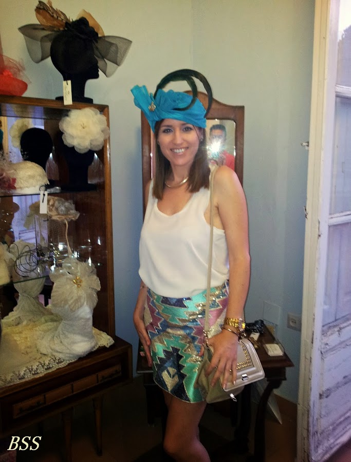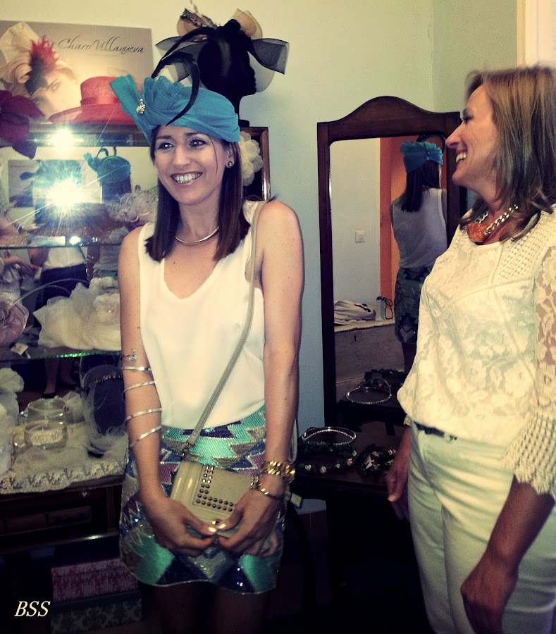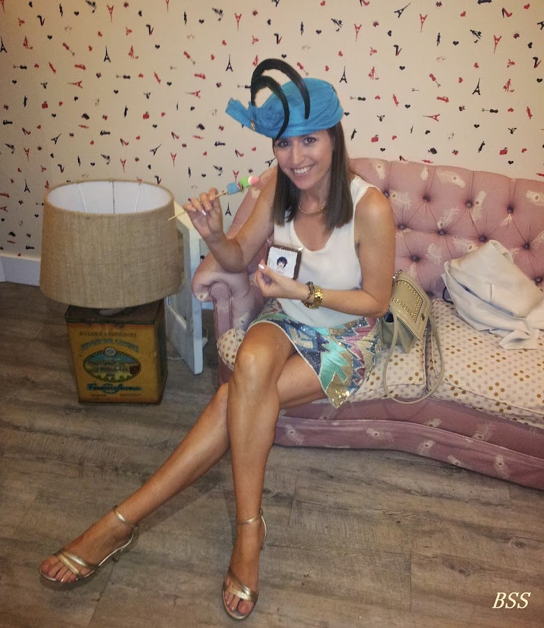 Antes de comenzar nuestra noche en blanco hicimos una corta parada en la Trendy room ya que Charo Villanueva me ofreció llevar uno de sus tocados para esa noche tan especial y yo acepté encantada