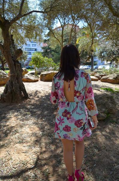 Como veis es un estampado muy alegre y favorecedor, lo combiné con clutch y zapatos en fucsia y como complemento una pulsera de manualidades monisimas en tonos rosas y dorados. Un look low cost con el que iréis perfectas a cualquier tipo de eventos como bautizos y comuniones.