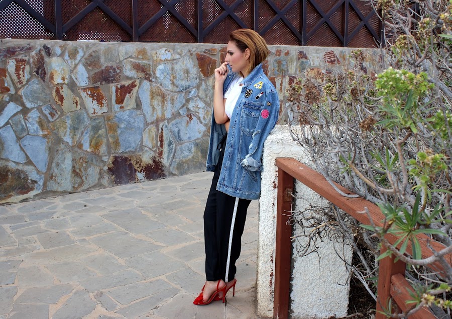 Lo fácil hubiera sido convertir este outfit en comfy sumándole unas zapatillas deportivas, pero como la ropa está para divertirse me decanté por unas sandalias de tacón y encima de color rojo para que resaltara.