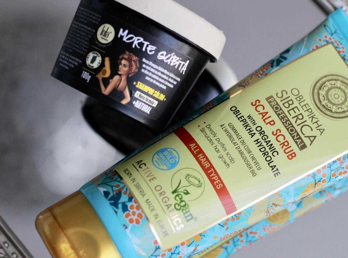 Exfoliante Cuero Cabelludo Oblepikha Natura Sibérica: su función es solo exfoliante, tendrás que lavar tu cabello después con tu champú habitual. Me encanta como purifica y regula la secreción de sebo. Contiene menta silvestre siberiana que deja una sensación fresquita en el cuero cabelludo sin ser desagradable. Sus partículas apenas se notan.