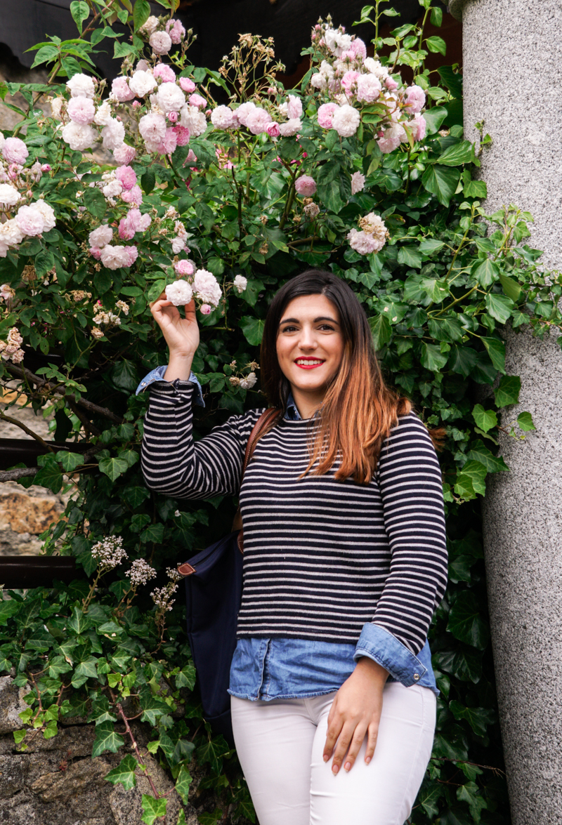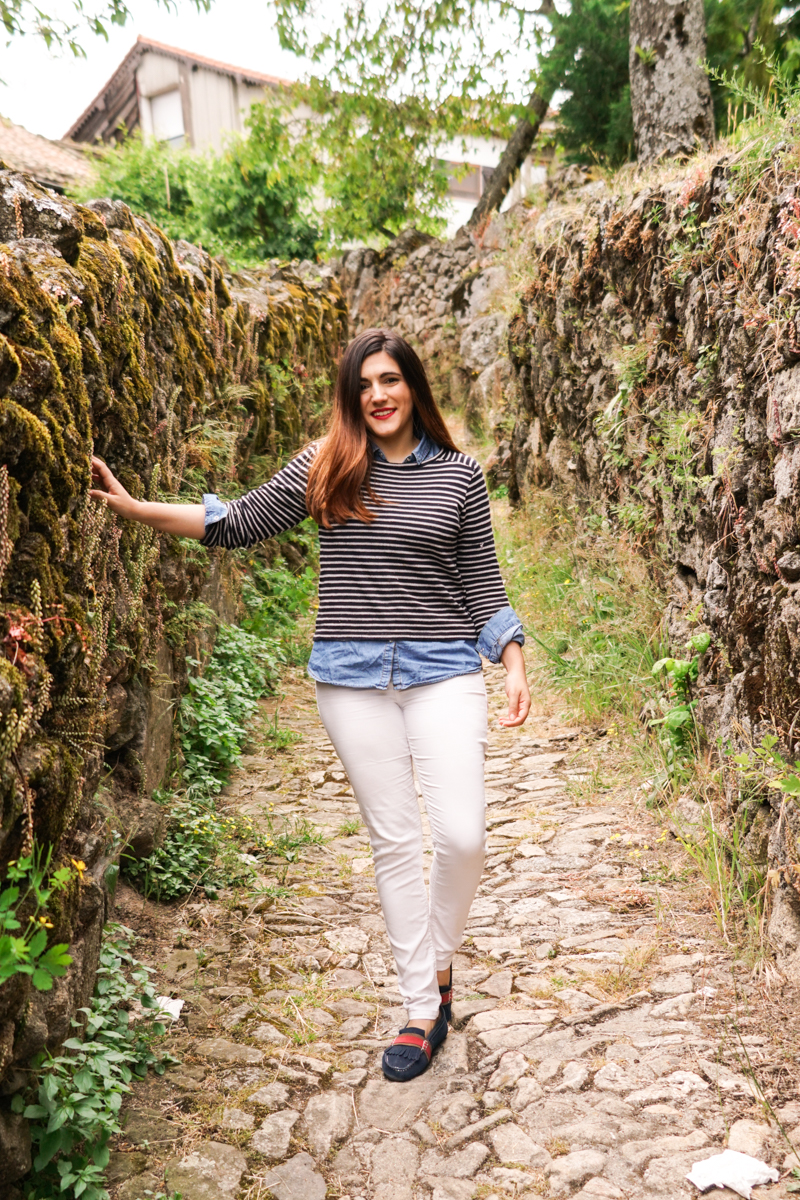 Básicamente este es el outfit que llevé para pasar el día por ahí, por si os interesa. Jeggings blancos de Calzedonia, mocasines tricolor, camisa vaquera de Springfield y jersey a rayas de Mango. Es muy común que yo me ponga este tipo de conjuntos de inspiración marinera en mi día a día. Digamos que es lo que me pongo normalmente, cuando no me hago fotos.