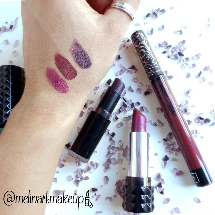 En los últimos meses me ha dado por los labiales potentes, como estos que os enseño en la foto por Instagram en la gama de morados y granates. Aprovecho para hablaros un poco de ellos.