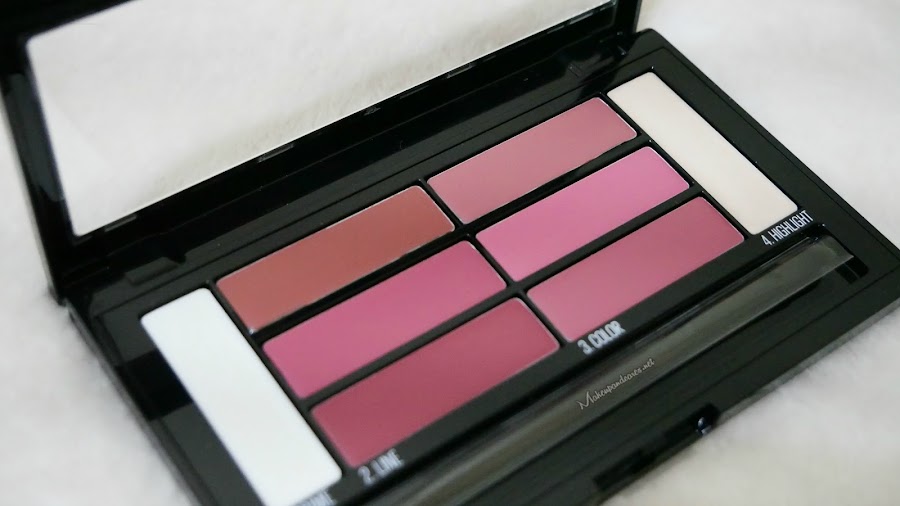 La paleta contiene 6 tonos , intensos y más claros en la zona central , en los extremos contiene un primer o prebase de labios y un iluminador .