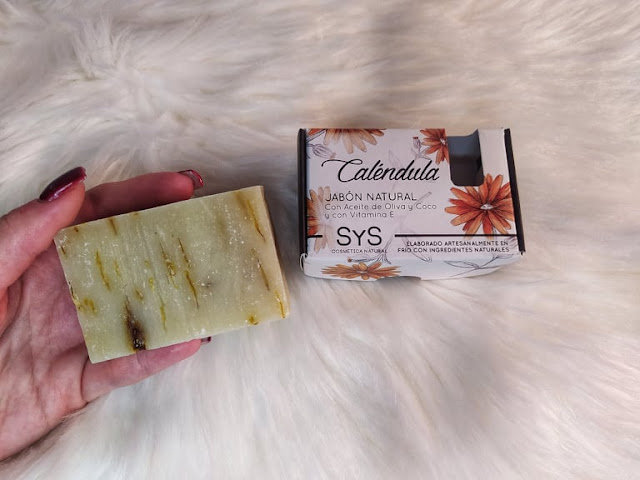 JABÓN NATURAL CALÉNDULA con Aceite de Oliva, Aceite de Coco y Vitamina E. Elaborado de manera artesanal en frío y con ingredientes naturales. Con propiedades cicatrizantes y calmantes. Indicado para pieles sensibles e irritadas, también para dermatosis, eczemas y rozaduras. Antiinflamatorio y calmante. Alivia la piel tras la exposición solar. Desinfectante natural de la piel. Lo estoy utilizando en el rostro porque con el uso de la mascarilla y por mi tipo de piel seca, sensible, deshidratada y con psoriasis, he notado el empeoramiento de mi piel y no tolero algunos productos actualmente por lo que he tenido que renovar mi rutina facial y con este jabón puedo hacer una limpieza suave y al mismo tiempo siento que me calma.