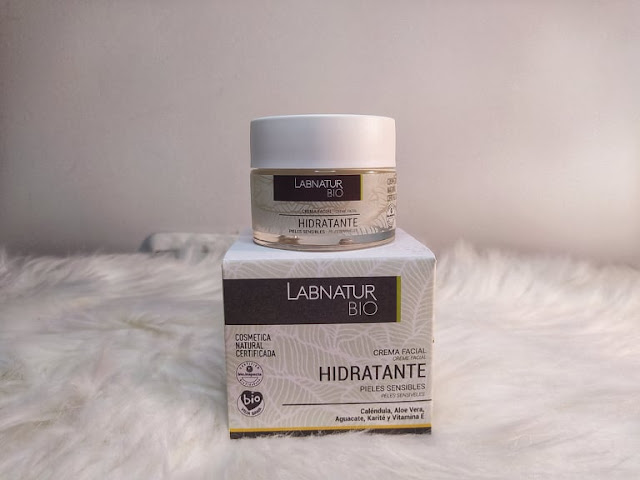 LABNATUR BIO CREMA FACIAL HIDRATANTE PIELES SENSIBLES. Ayuda a hidratar, regenerar y nutrir la piel. Indicado para pieles sensibles. Reúne las propiedades de los principios activos que la componen: la caléndula con alta concentración de triterpenos actúa como analgésica y antimicrobiana: el aloe vera nutre y limpia la piel, regenerador celular, cicatrizante y tonificador; el aguacate rico en proteínas y vitaminas A, B y D actúa contra el envejecimiento celular; la vitamina E mejora la acción antioxidante y fotoprotectora; y la manteca de karité hidrata y es antiirritante, protege de las agresiones externas. La estoy utilizando como crema hidratante de día por su textura ligera que hace que la piel la absorba con facilidad sin dejar sensación de pesadez, lo que permite ponerte la mascarilla de protección o el maquillaje tranquilamente justo después de usarla. Siento la piel hidratada, calmada y protegida durante todo el día.