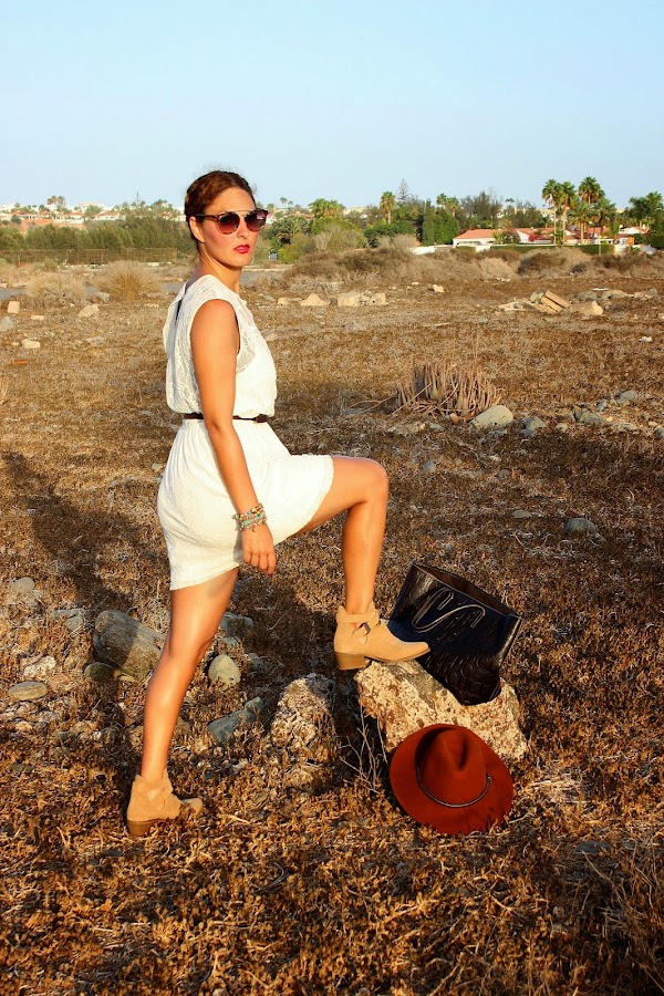 llevo: sombreo y botas de STRADIVARIUS temporda ,vestido GREEN COAST temporada de verano bolso de CAROLINA HERRERA (old)