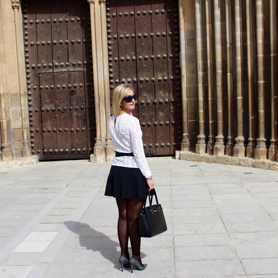 Today I show you an outfit that I love, I think that its very sweet and feminine. In the outfit I wear a white lace tee with a black skater skirt and a navy jacket that I showed in this post. To give a touch to the outfit I put a belt, my stilettos and my black bag of Michael Kors. A chic outfit that you can wear in a lot of situations.