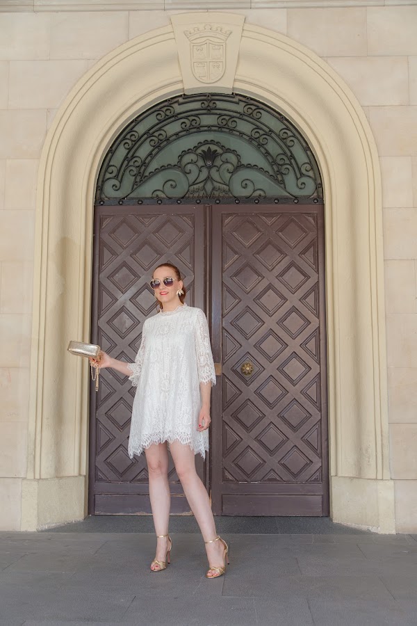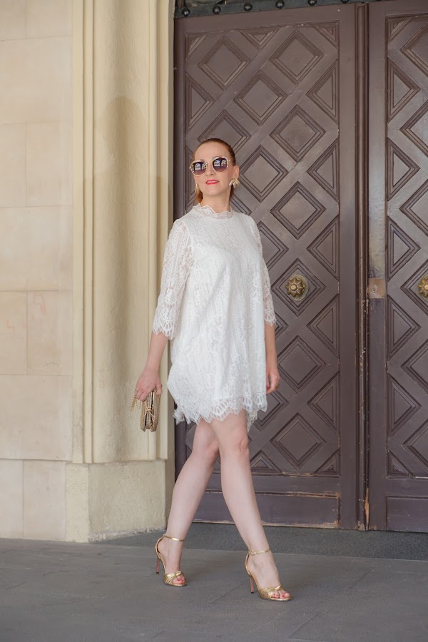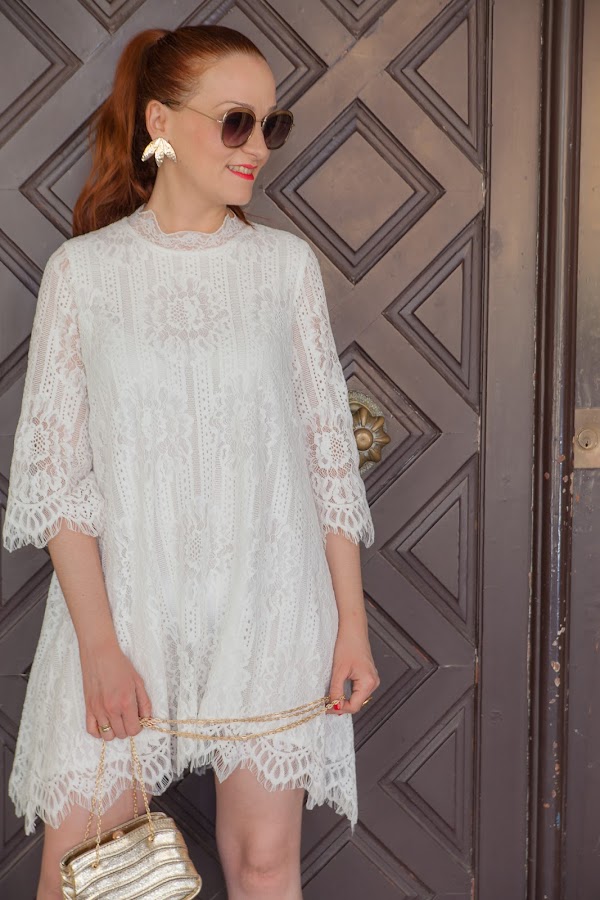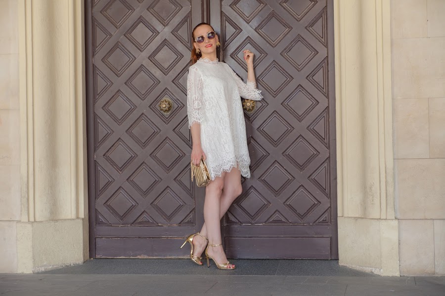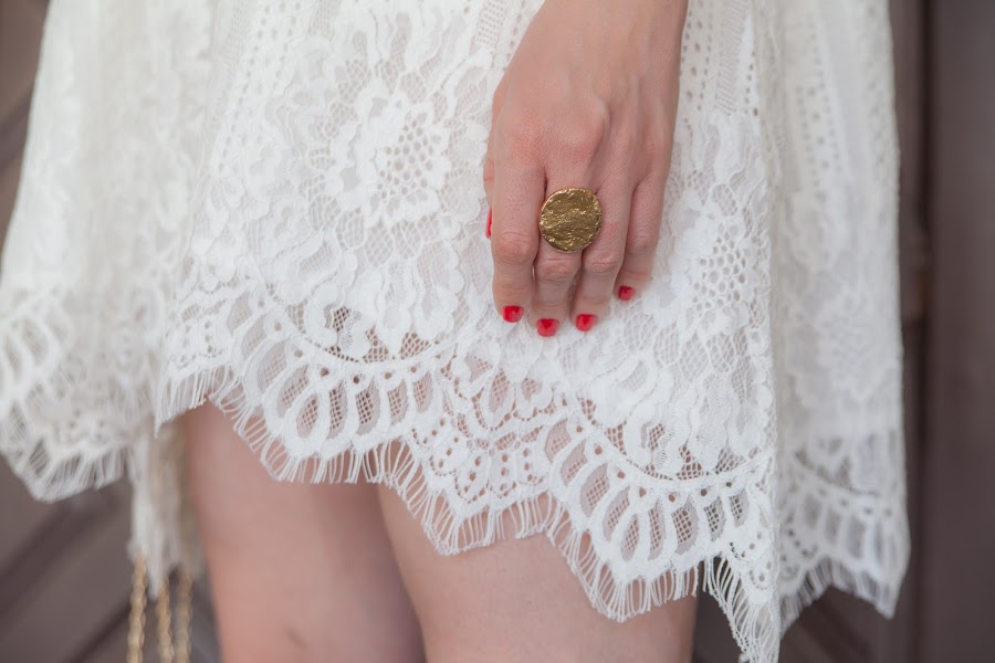 El verano está lleno de celebraciones y fiestas que nos permiten utilizar looks más arreglados, por eso mismo hoy os traigo unas fotos con un estilismo perfecto para nuestros eventos. Aunque no soy muy de vestidos blancos, al ver este simplemente me enamoré. Tiene un corte asimétrico que le da un toque original y diferente, además el encaje es realmente bonito. Para darle un punto más chic lo combiné con los complementos en dorado.