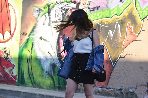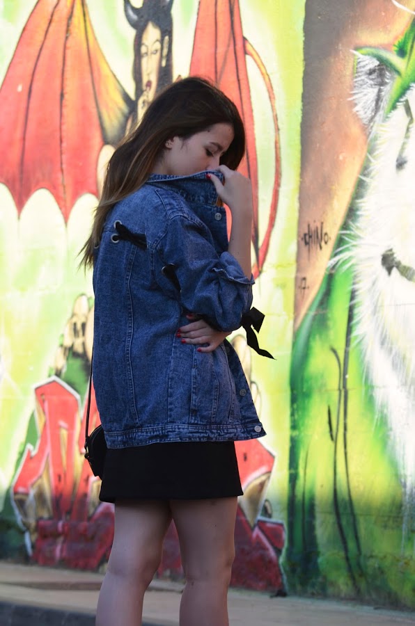 Como el pasado fin de semana bajaron un poco las temperaturas(sobretodo por la noche) decidí llevarme mi nueva cazadora denim con cordones de terciopelo de la web SheIn que me fascina. Tenía un montón de ganas de recibirla y es que no dejo de pensar en posibles looks que hacer con ella tanto para ir a la universidad como para ir un poco más arreglada. ¿Qué os parece?
