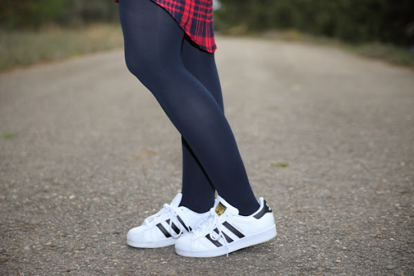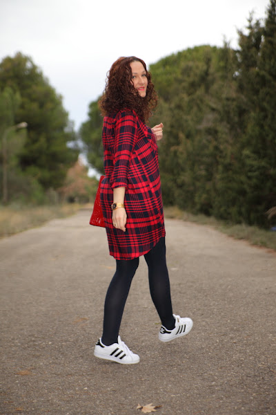 Siempre me gusta alegrar los días grises llevando prendas coloridas, no se a vosotros pero a mi me ayuda a sentirme más feliz y contenta. Las fotos de hoy las hicimos hace un par de domingos, amaneció gris y lluvioso así que pensé que era el mejor momento de estrenar este vestido camisero de cuadros. Lo compré hace bastante y lo tenía en el armario esperando su momento. En un principio pensé en ponérmelo con zapatos, pero ese domingo me levanté algo pachuchilla y me apetecía comodidad por lo que los cambié por mi zapatillas preferidas, las Adidas Superstar.