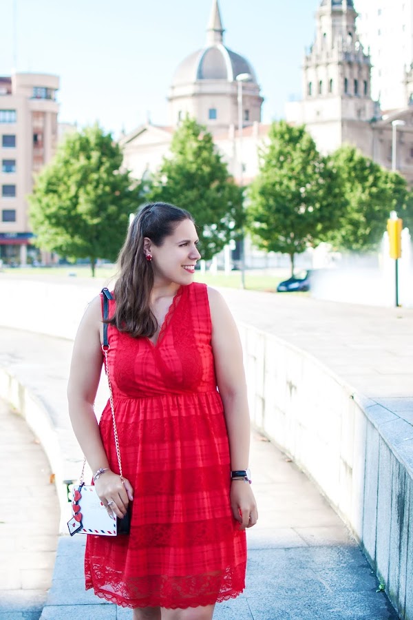 Una vez más, me vuelvo a salir de mi querida zona de confort y apuesto por el rojo en su tonalidad más brillante. La felicidad del verano (aunque el tiempo no acompañe) hace que me llamen la atención prendas que en otra época del año no me hubiera fijado en ellas. Esto me pasó con este precioso vestido de Rosegal con escote en V, encaje y un bordado súper bonito. Aunque os confieso una cosa, la culpa de haber elegido este vestido la tiene este bolso en forma de sobre, con el que no puedo morir más de amor. ¡Adoro los accesorios originales y cargados de personalidad! Por otra parte, ¿no os ocurre a veces que elegís un complemento y a raíz de él, creáis el look al completo? ¡A mí me pasa un montón y ésta es una de ellas! Espero que os guste y feliz semana