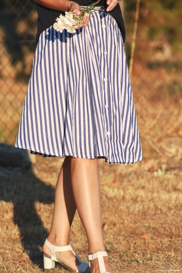Ya sabéis lo aficionada que soy a las faldas midi, y si en invierno me hice con una falda lápiz, en verano me he hecho con ésta estilo lady. Me siento como recién salida de la película de Grease!