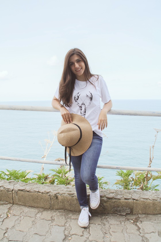 Estuve cinco días recorriendo la costa vasca, pues mi familia es de allí. Primero estuvimos en San Juan de Gaztelugatxe, futuro escenario de Juego de Tronos y un lugar que me enamora desde que era niña. Y menos mal que llevaba el sombrero de mi colaboración con SammyDress, porque me salvó la vida. Es increíble el buen tiempo y el solazo que pillamos todos los días de nuestra visita.