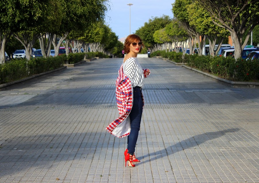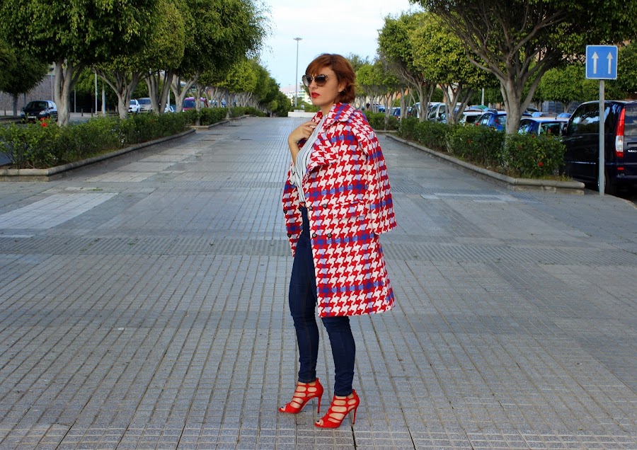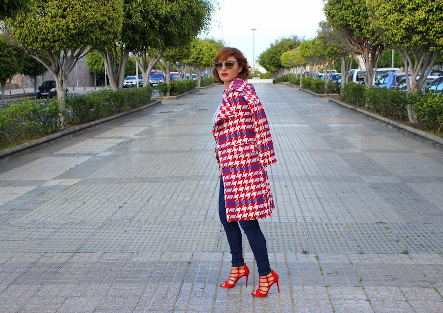 Un color que me apasiona en cualquier estación del año es el rojo, no he encontrado un abrigo largo en este color que me guste pero encontré este con un estampado casi básico que me encantó.