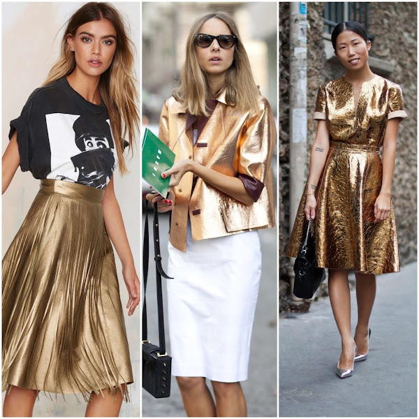 No puede faltar en tu armario una prenda metalizada. El oro y el plata son los protagonistas de esta temporada, que veremos en faldas plisadas, faldas de lurex o de lentejuelas. La fiebre disco invadirá nuestro armario.
