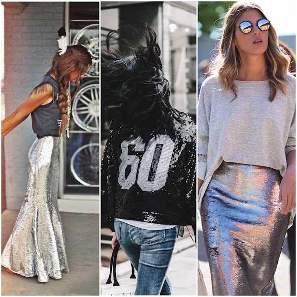 Las lentejuelas ya no son exclusivas para looks de noche, sino que las veremos en looks de día combinando nuestra camiseta o jersey con un falda de lentejuelas o en bombers. Además son super tendencia en colores metalizados.