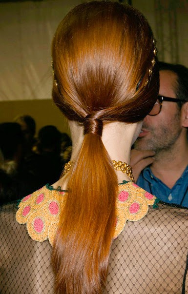 1. Una coleta alta y despeinada, que simule un recogido informal. Y con una textura mate que simule el cabello recién salido de la playa.