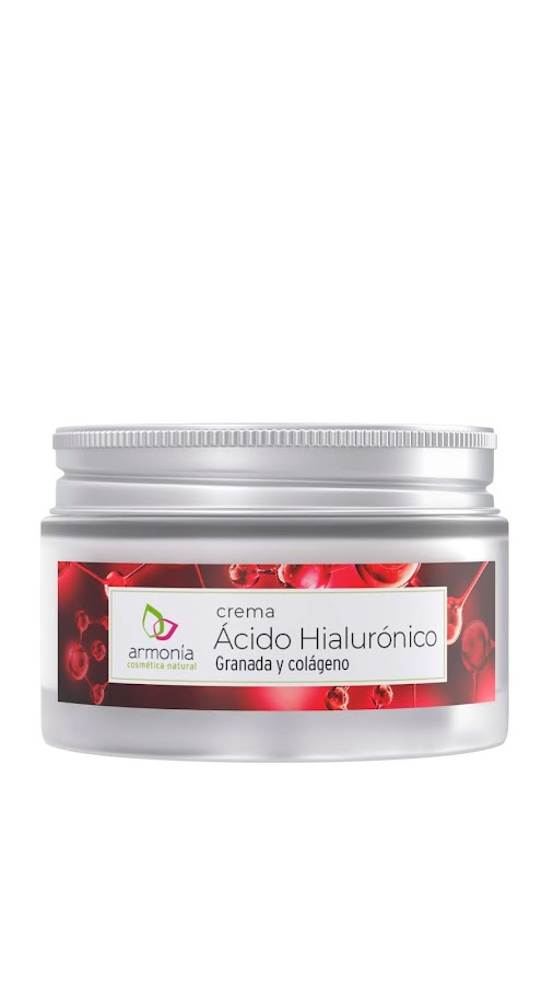 La crema Ácido Hialurónico a base de granada y colágeno revitaliza y regenera la piel a la vez que previene las arrugas. El ácido hialurónico, con gran poder hidratante, posee una extraordinaria capacidad de atraer y retener las moléculas de agua. De esta forma, la crema mantiene el grado ideal de humedad para que la piel luzca hidratada, suave y luminosa. Además, gracias a la granada y el colágeno, ayuda a regenerar, tonificar y disminuir las imperfecciones de la piel. Ideal para todo tipo de pieles. Crema Ácido hialurónico