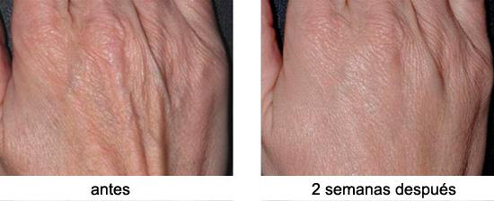Más volumen. Cuando las manos se vuelven delgadas, finas, con las venas marcadas,existen diferentes productos para ofrecer una apariencia más joven: grasa, ácido hialurónico, hidroxiapatita cálcica… que son depositados bajo la piel por medio de unas microinyecciones con agujas de un diámetro muy pequeño, apenas molesto para el paciente. Con esto se consigue devolver a la piel el volumen perdido, mejorando la elasticidad y la hidratación. Los resultados son inmediatos, rellenando la piel del dorso de las manos, y a largo plazo, estimulando la producción de colágeno. Una piel mucho más joven y tersa. Hay que repetir el tratamiento cada seis meses.