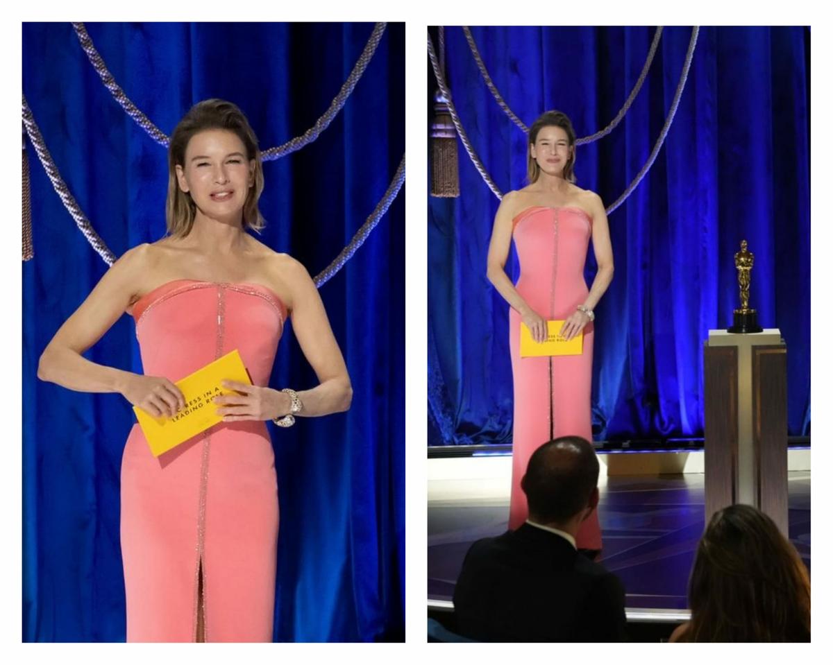 Mi segunda favorita es Renée Zellweger (de Armani Privé también). De ella no hay imágenes de la alfombra roja, pero no me importa porque está guapísima se ponga donde se ponga! Muy sencilla pero muy elegante. El color del vestido la favorece y rejuvenece, la pedrería está justo donde tiene que estar y la abertura llega justo donde tiene que llegar.