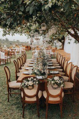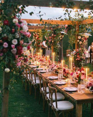 Mezclamos todo junto, mientras creamos un pasillo: para una ceremonia que pueda durar, un pequeño rincón acogedor o en un lugar central en el medio de las mesas de la cena. Una cosa es segura, ¡tendremos que anticiparnos al clima!