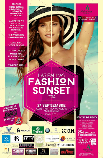 18.00 - Inicio LAS PALMAS FASHION SUNSET 2014. Llegada con copa de bienvenida. Inicio del SHOWROOM de complementos y presencia de Alzheimer Canarias en el acceso al edificio con su stand promocional.