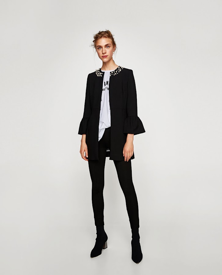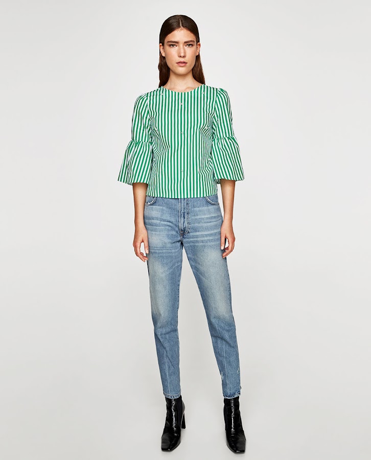 Cuerpo de popelín blanco y verde con perlas de Zara