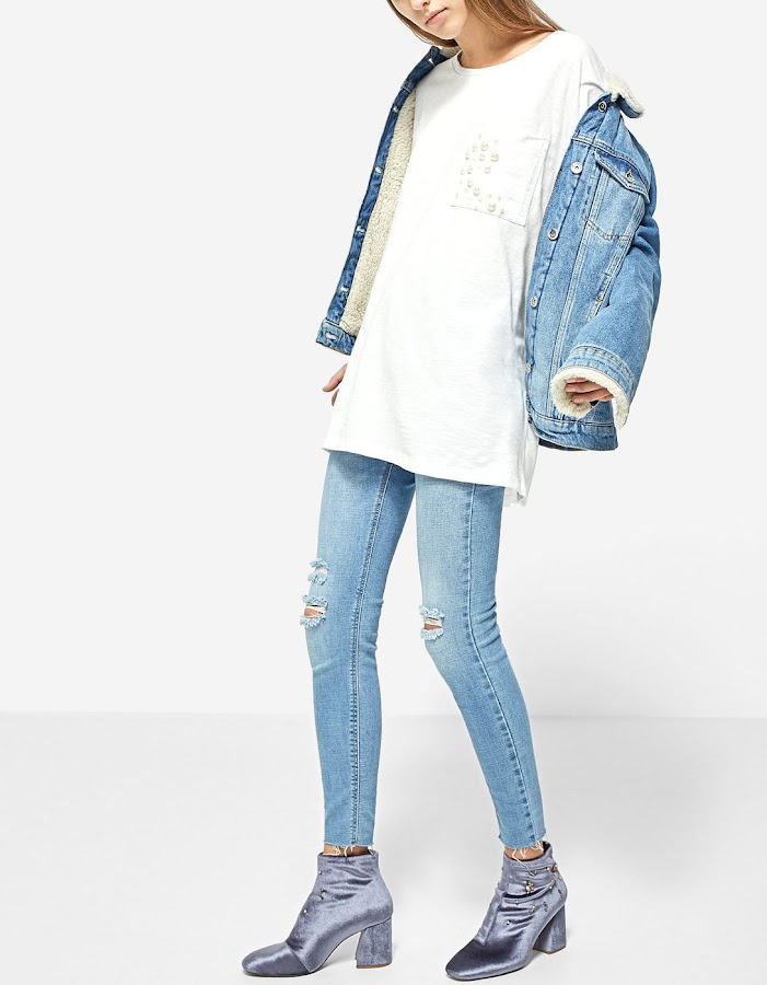 Camiseta extra larga con detalle de perlas de Stradivarius
