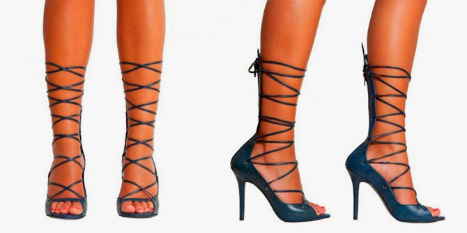 Por ejemplo, estas anudadas a la pierna, que la célebre blogger a Trendy Taste ha puesto tan de moda, de tacones imposibles, nos parecen geniales.....eso sí, para minimizar posibles sofocos o resultados en la población masculina algo fetichista....LLevadlas como hace ella, con shorts y una camiseta naif, y así les restáis importancia...