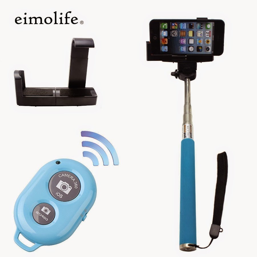 eimolife ® impermeable extensible autorretrato foto Selfie Handheld palo Monopod con adaptador para trípode para Gopro Hero 1/2/3/3 + con ajustable Phone Holder soporte para iPhone iPhone 5 5/5s 6 Samsung Galaxy s3/4 & Wireless Bluetooth disparador remoto obturador controlador para IOS Android Smartphone (T02, Azul)