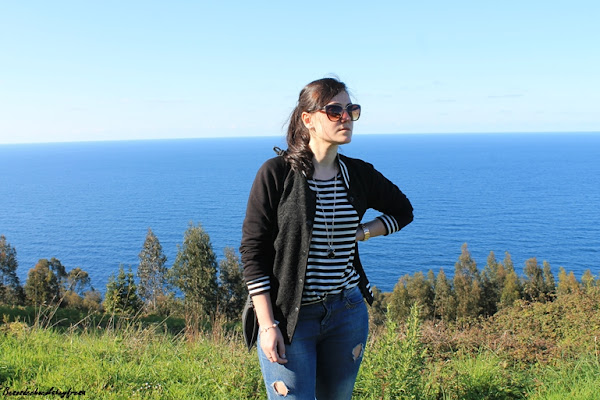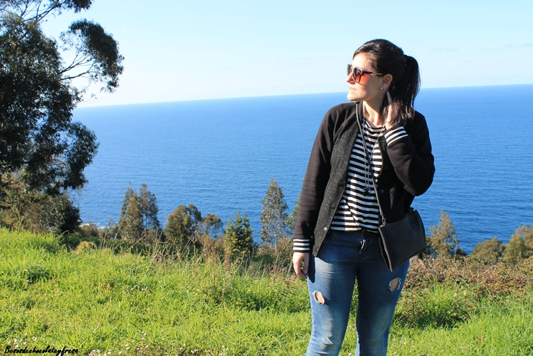 Nos acercamos hasta su mirador, el mirador de San Roque desde el cual se contempla todo el mar con algunas de sus playas y las montañas al fondo con los Picos de Europa nevado, el puerto pesquero y como no, el pueblo con su peculiar disposición. Aprovechamos para sacar también fotos del look cómodo para el viaje de vuelta.