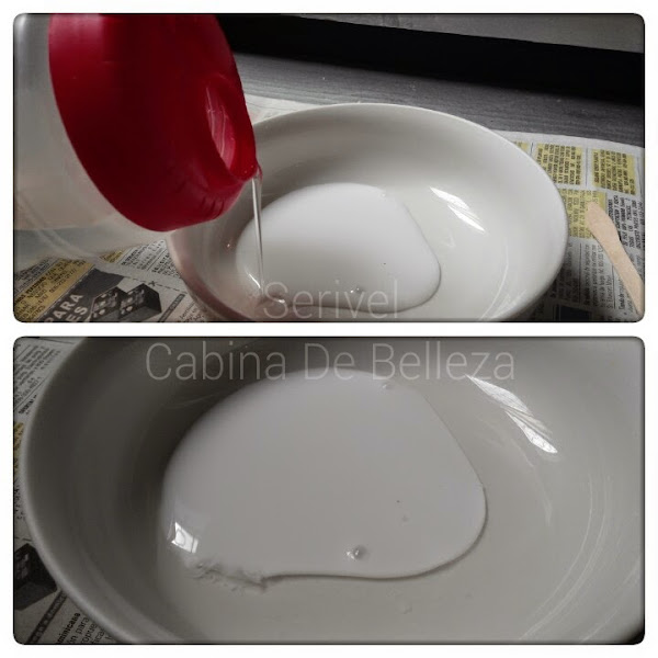 Lo siguiente es hechar el pegamento o ega en el recipiente. La cantidad depende de lo que se va a hacer con el latex.