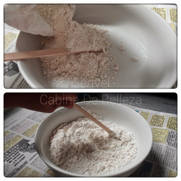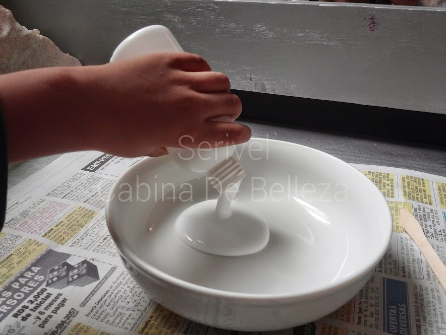 Para empezar a hacer el latex vamos a colocar el recipiente sobre el papel de periódico.