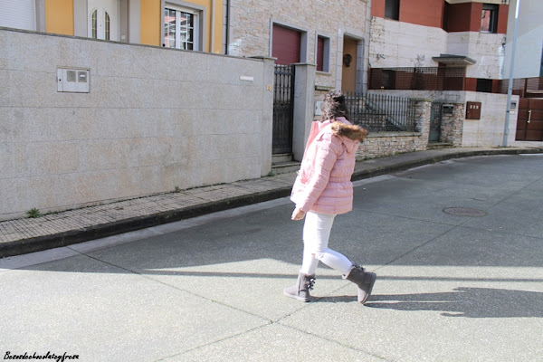 Complete the look with broken white jeans, boots in gray and plumífero in pink baby with hood of pelito. What do you think? Do you have any clothes lace-up?