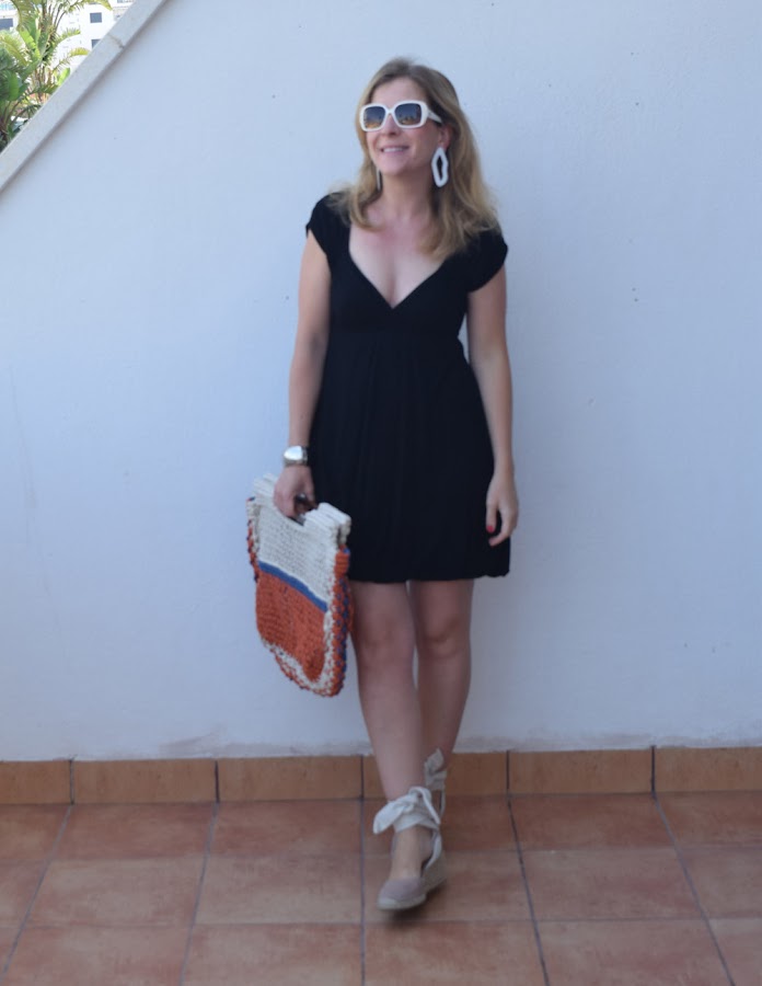 Solo necesito añadir un maxi bolso para mis cosas y las de los niños. Aunque este tipo de bolsos tipo red son preciosos, si los llenas mucho tienden a deformarse, así es que toca tratarlos con cuidado.