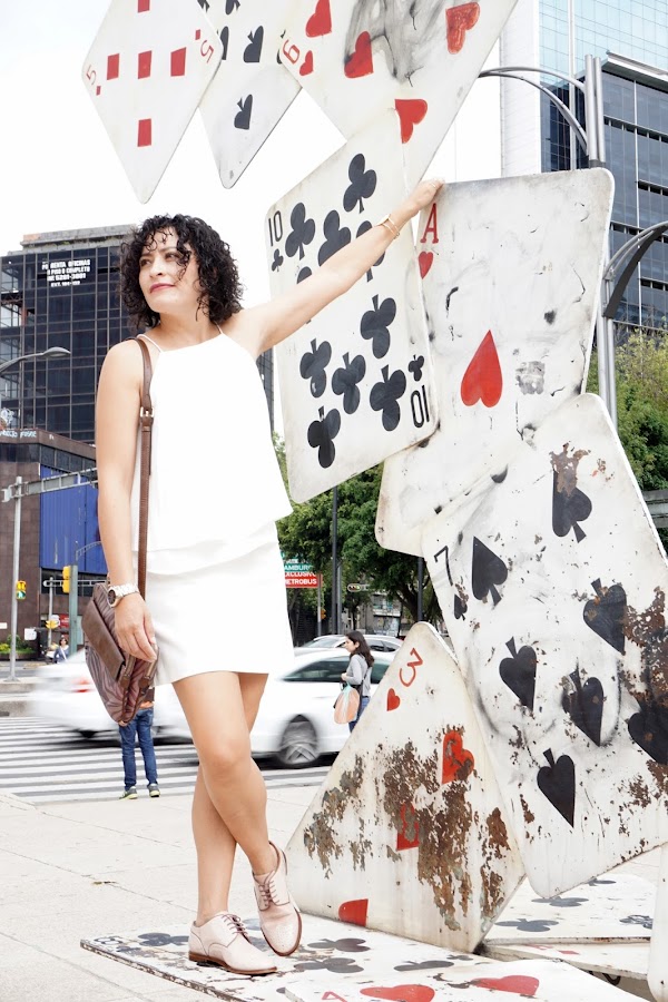 Es un look súper simple, una minifalda tipo "A", un top muy lindo pues la tela es delgadita y con mucha fluidez, mis oxford para romper la seriedad del look y un bolso con un bonito estampado, la verdad me siento libre para disfrutar al máximo este día.