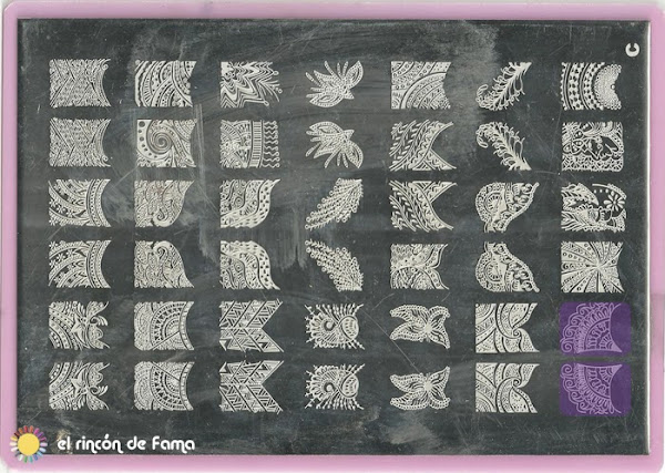 ? Para la base: Milk de Rare (dos capas) + chunky holo purple Nº234 de Kleancolor? Para la estampar: esmalte para stamping negro de Essence ? Para colorear: Esmalte Nº105, Nº079, Nº 107 de Yssy y esmalte transparente de Flormar