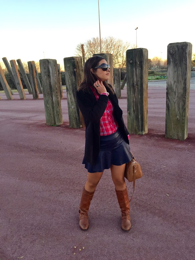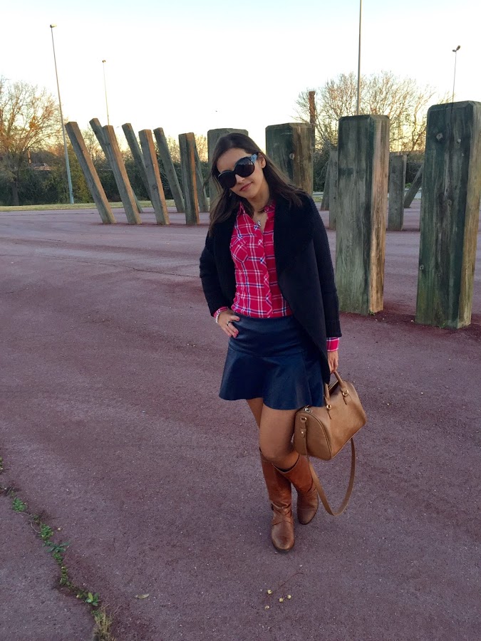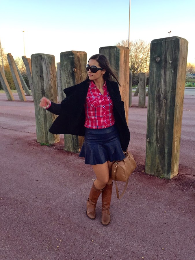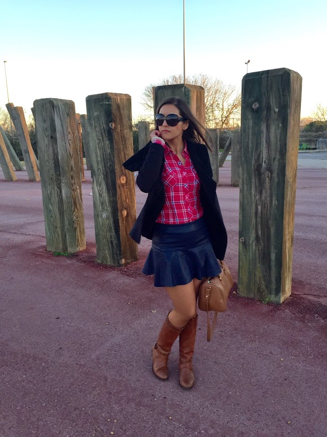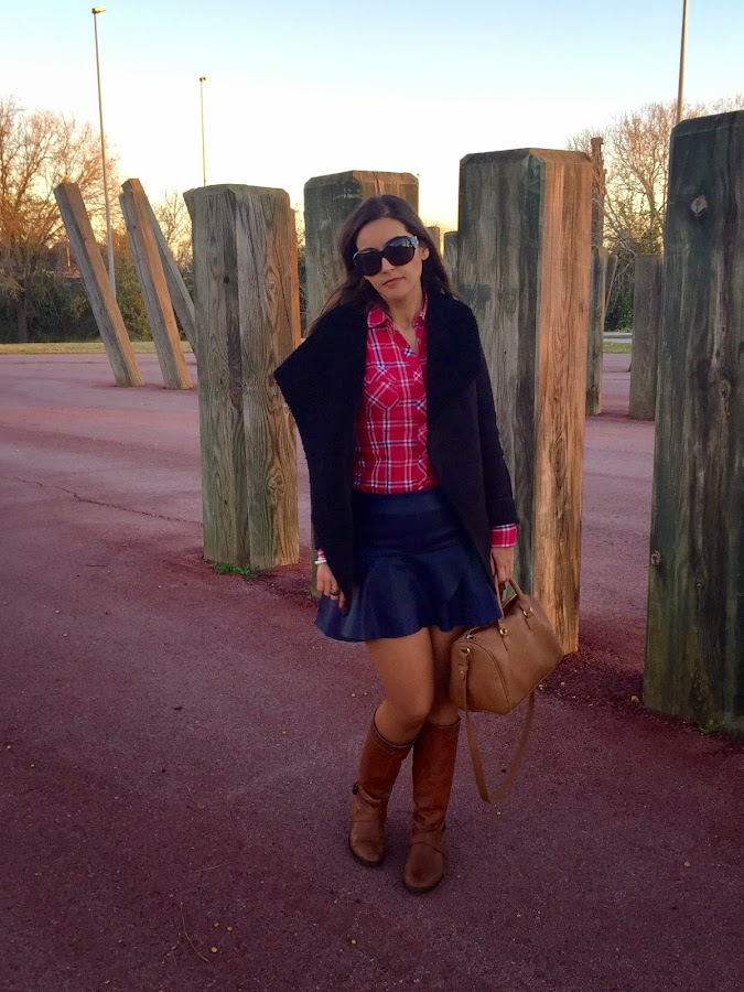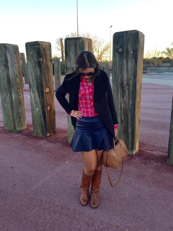 ¿Qué os parece el look de hoy? Feliz fin de semana.Good night babies! Last post of the week with a perfect outfit for the weekend. Last Sunday, I wanted to wear a skirt, because with the cold I always wear pants. In the outfit of the day, I wore a leather skirt, fuchsia tartan shirt and my new jacket that I showed you in this post, and as I told you, you will see it in more outfits. The accessories of the outfit were camel bag and boots.