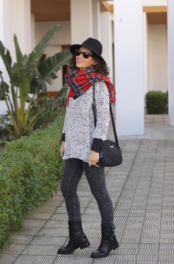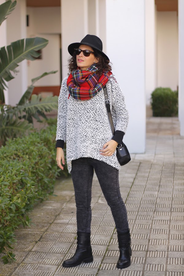 En cuanto al look de hoy, algo sencillo y cómodo con leggings, maxi sweater, botas moteras, sombrero y bufanda de cuadros, ¿Qué os parece, os gusta el look? ¡¡Muchas gracias por estar ahí y por todos vuestros comentarios!!