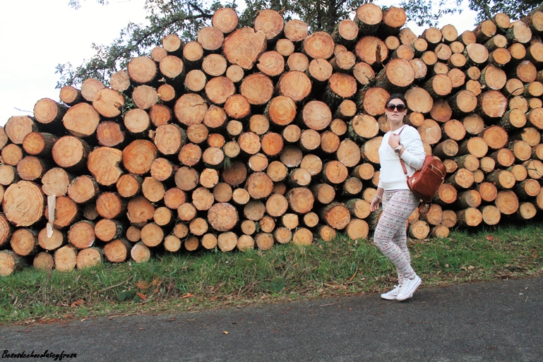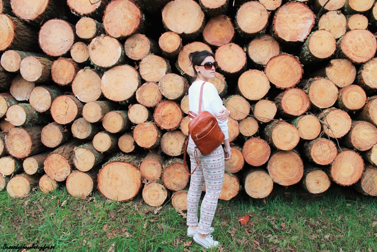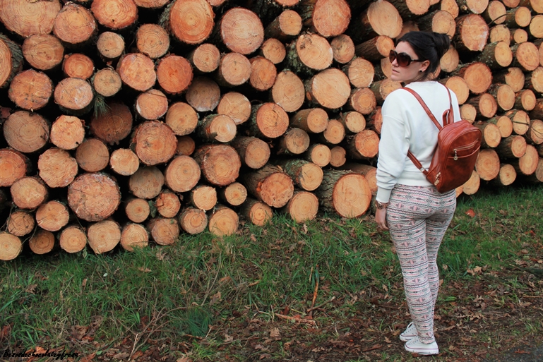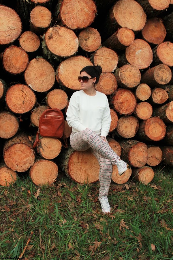 Today I show you a look when it was still pleasant temperatures, before entering Winterfell hehe. Composed by ethnic print leggings nude and pink, this time with white sweatshirt, sneakers and backpack in brown, a simple look and SUV for a day trip and relax.