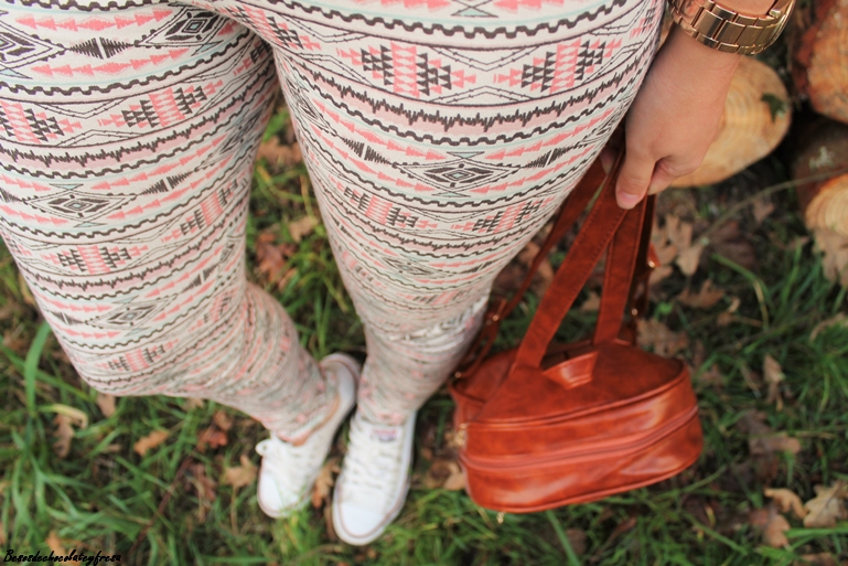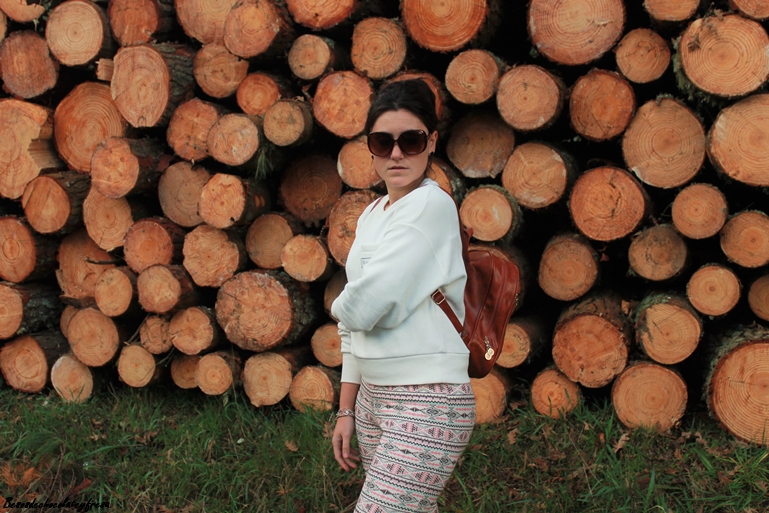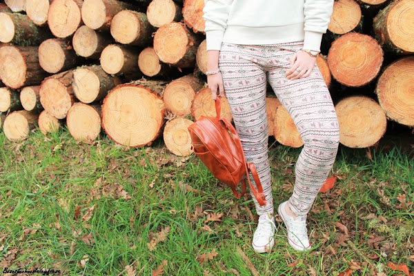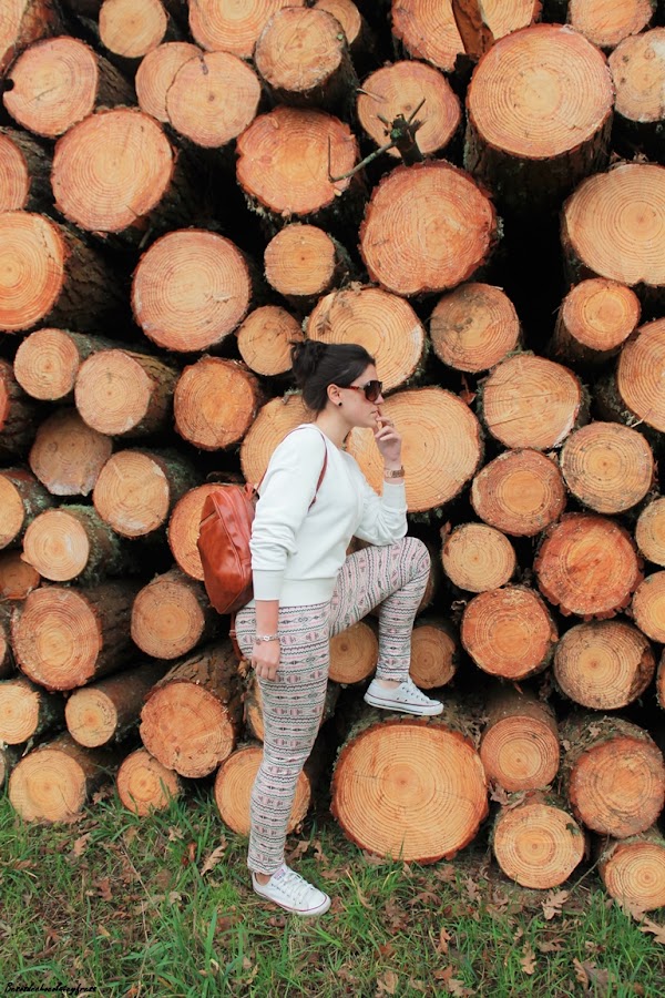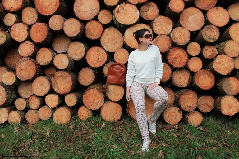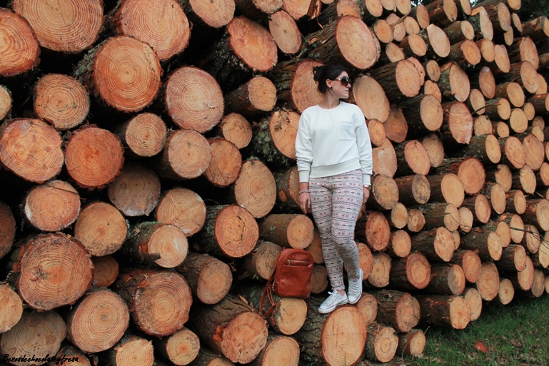 Hoy os enseño un look de cuando aún hacía temperaturas agradables, antes de entrar en invernalia jeje. Compuesto por leggins de estampado étnico en nude y rosa, esta vez con sudadera blanca, sneakers y mochila en marrón, un look sencillo y todoterreno para un día de paseo y relax.