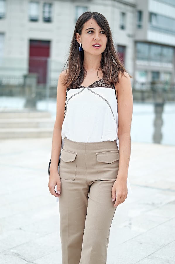 Pantalones y top: Zara / Bolso: El corte inglés / Gafas: Rayban/ Sandalias y pendientes: Parfois